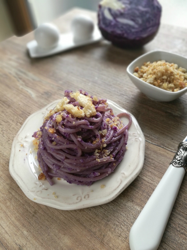 Pasta Con Cavolo Viola | Le ricette light con il cavolo viola. Adoro il colore meraviglioso che solo il cavolo viola (o rosso) riesce a donare ai piatti. 250 g di cavolo cappuccio 80 g di mandorle 50 g di pinoli 1 cucchiaino di rosmarino tritato 100 g di olio di oliva cucchiai di succo di limone 50 g di pane integrale 2 cucchiaio di lievito alimentare sale e pepe 1 spicchio d'aglio. Il cavolo cappuccio viola è un ortaggio ricco di vitamine e sali minerali, può essere usato sia crudo che cotto. Quella che vi propongo oggi è una pasta semplice ma di gran gusto che vi conquisterà.